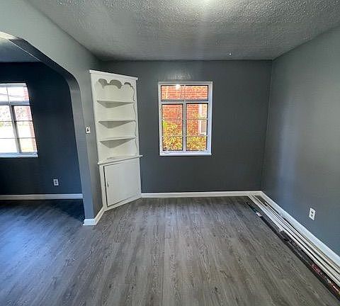 Available for immediate move in! Hardwoods throughout main living areas, brand new carpet in the two bedrooms that share an updated hallway bath with modern fixtures. Kitchen has stainless steel appliances, granite counter tops. Built ins in the large dining room, tons of windows throughout.