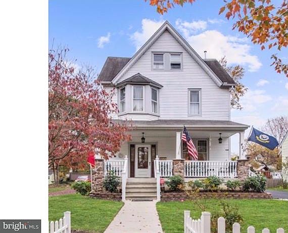 Expanded three story classic Moorestown Victorian. Welcome to this lovely well maintained Historic home just a few blocks from the town center. Newly renovated front porch with stone columns leads you into a beautiful entry foyer with a hand painted ceiling Fresco. Enter the wood paneled library to the left and flows into the formal living room. The exquisite dinning room with a Schonbek Chandelier next to the newly updated (2015) eat in kitchen which flows nicely into the added large and comfortable family room. The home has 4 5 bedrooms and 2 1 2 baths with room on the third floor to add another full bath room. The large rear yard features a private patio area along with an over-sized detached garage. You will definitely see and feel the pride in ownership in this home. From the period crown molding, dental molding to the updated Heaters and Central Air. All this plus Moorestown Blue ribbon Schools, close to shopping, all major highways 90 minutes to NYC or 30 minutes to Philadelphia..... Look no further you have found your dream home. Sellers are offering a worry free Full HMS Home Warranty on this home so it's ready to just move right in!