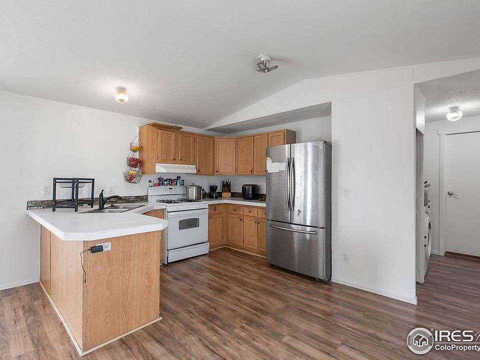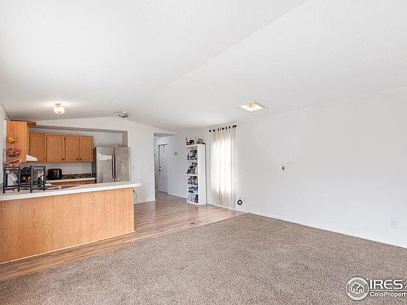 Welcome to this beautifully renovated home! This property features a recently updated furnace and water heater (2022 and 2021). Recently installed flooring in the living room, kitchen, primary bedroom, and back bedroom (2020), along with brand-new flooring in the hallway and both bathrooms. Fresh paint brightens up every room, while both bathrooms have been recently remodeled. Other updates include a new kitchen backsplash, replaced outlets, updated exterior skirting, and a resealed metal roof (2023). The popcorn ceiling has been replaced with a modern stamp texture. This is the ideal home at Lago Vista Community! Embrace a lifestyle that blends city excitement with the outdoors just off Highway 287, connecting you effortlessly to Denver and Fort Collins. When you're not exploring the Rockies or city delights, this pet-friendly, family-oriented community awaits. Amenities include a clubhouse with a kitchen, swimming pool, on-site management/office, well-maintained sites, and nicely paved streets. Lot rent is $950/m doesn't include utilities. Please call Co-Listing Agent with any questions.