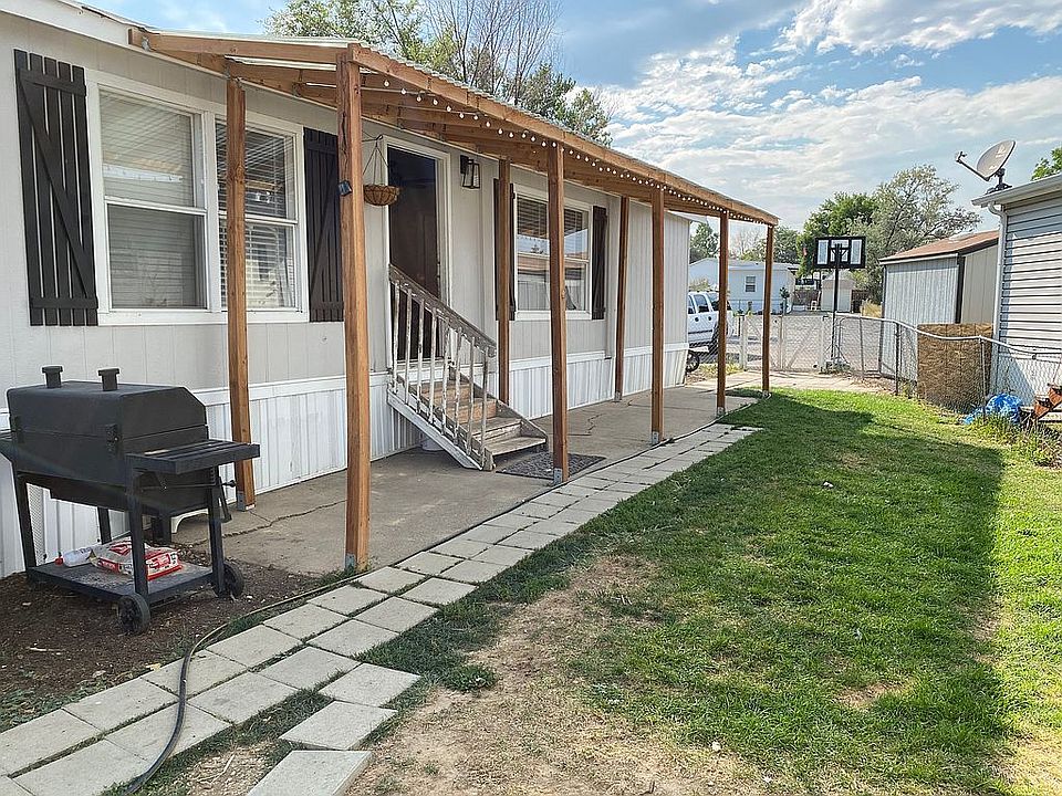 Remodeled and move in ready!! Lot 40 Lago Vista Mobile Home Park. 3 bedroom 1.5 bath Office/den Stainless steel fridge, dishwasher, stove/hood, and sink! Full size stackable washer and dryer included! NEW: paint, flooring, cabinets, butcher block countertops, some windows, large awning and two sheds (10x10 and 8x10). Large fenced yard. Forced air heating Evaporative cooling Fruit trees/ berry bushes Garden beds and compost bin Room for entertaining!! For sale by owner! Asking $65,000. Must get park approval. Park amenities include a clubhouse and swimming pool. Park also has after school and summer activities for children. Call or text to set up a showing! 970-294-8866