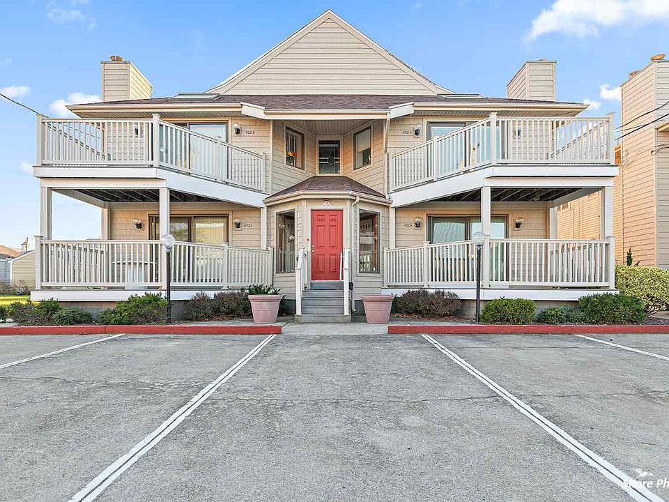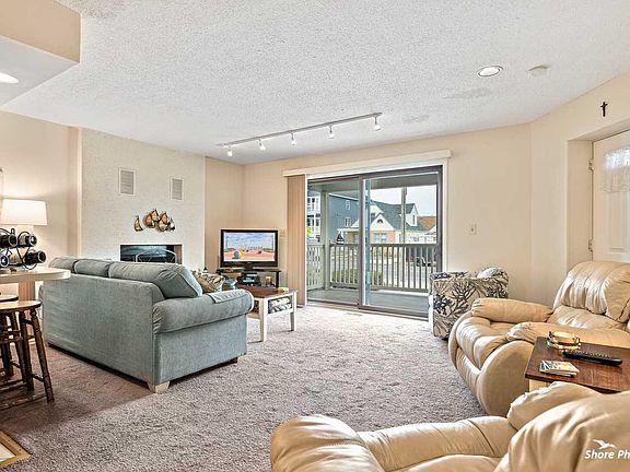 FANTASTIC LOCATION & PRICE! This well cared for Beach Condo is only 1 block to the Beach and is in one the most desirable areas of North Wildwood. As you enter the condo you will find an open floor plan with a large family room w/ fireplace & sliders that lead to a private covered deck w/ Ocean View. Also, there is a full kitchen w/ bar stools and a separate dining area. The hallway leads to the washer/dryer area, three spacious bedrooms and 2 full bathrooms (1 in the master & 1 in the hall). On the ground level you have an assigned parking space and a private locking storage shed for your beach chairs & boogie boards. GREAT CONDO ASSOCIATION! The condo fee is a reasonable $209 per month and a NEW ROOF Is getting ready to be installed! Great Buy!!!