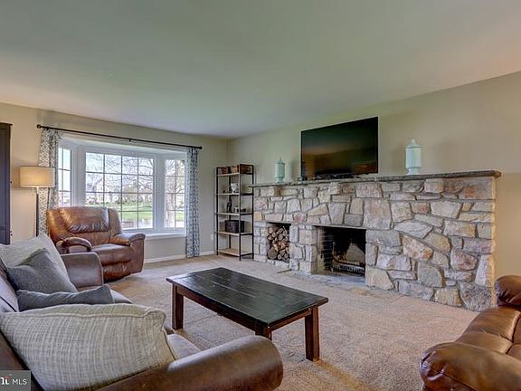 Showings begin 5/3. Enter this very special picturesque, stately farmette nestled into the New Holland community via the long driveway, with spectacular pond views. In each season, you are presented with the natural and ever-changing beauty and picture-perfect views throughout the property. The winding stream flows through the pasture into the pond. The property offers a fully equipped horse barn, tack room & pasture. The attached home/in-law quarters features a master suite, open floor plan, living area with fireplace, kitchen with granite countertops, tiled backsplash, office/craft room, private entrance & attached garage. The main home features 3 spacious bedrooms, 2.5 bathrooms, two fireplaces, formal dining room, living room & delightful views from every window! Exceptional! Per sellers, zoned for up to four horses. New roof 2016,New windows 2016,In-Law Quarters(interior total renovation) are all new,completed at time of purchase.New gutters/soffit/fascia 2016,New slider door,connected to public sewer,HVAC motor replaced 2015.Barn has 4 stalls,electric and water,tack room,storage area. Approx 4.40 acres.