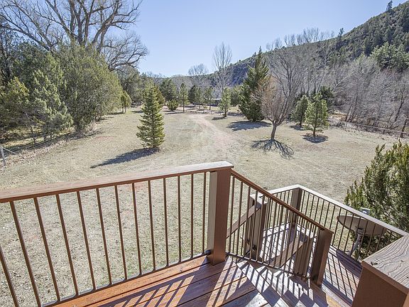 - Exterior Features: Covered Porch/Deck, Tall Pines on Lot, Porch/Deck, View of Mountains, Panoramic Views, Work Shop