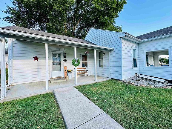 LOW COST LIVING! List of 5 year updates include roof, gas furnace, AC condenser, water heater, and kitchen appliances. Welcome to this bright and inviting one-story home, filled with natural light from numerous large windows. This 2-bedroom, 1-bath gem offers a perfect blend of comfort and convenience. The spacious dining room flows into a large kitchen with a breakfast bar, ideal for morning coffee or casual meals. Enjoy outdoor living with two covered porches, perfect for relaxing or entertaining. Located within walking distance of the downtown square and nearby parks, this home is close to shops, restaurants, and all the amenities you need. Don't miss this opportunity to make this cozy home yours. This home could qualify for 100% USDA financing!
