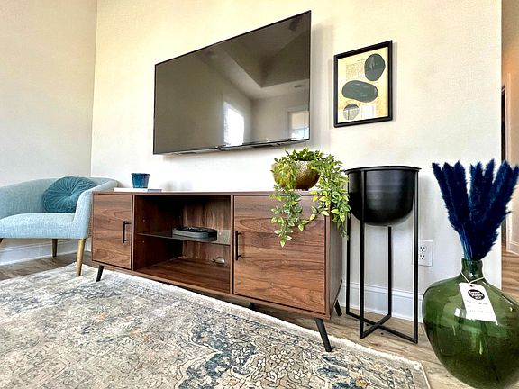 - Exterior features: Babysitter recommendations, Bathtub, Bed linens, Breakfast, Cleaning products, Coffee, Coffee maker, Cooking basics, Dedicated workspace, Dining table, Dishes and silverware, Essentials, Extra pillows and blankets, Fire extinguisher, First aid kit, Free parking on premises, Hangers, Iron, Kitchen, Long term stays allowed, Luggage drop-off allowed, Private entrance, Room-darkening shades, Single level home, TV, Toaster, Wi-Fi