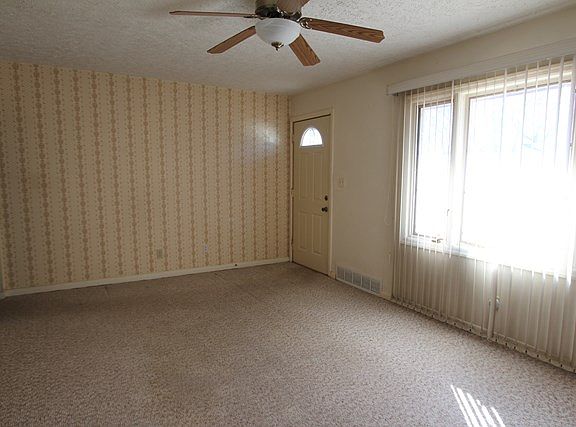 Why pay rent when you can afford to own this 2 bedroom 1 bath home eat-in kitchen, privacy fenced back yard. 20' x 24' detached garage with opener. Shingles and gutters in 2014. Dog kennel. No FHA/VA loans.