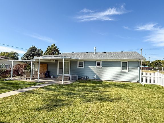 Be sure to watch the virtual tour! This charming ranch-style home, built in 1958, offers 925 sq. ft. on the main floor with an additional 925 sq. ft. in the finished basement. The main level features two bedrooms with floor-to-ceiling closets and a beautifully remodeled bathroom with a jetted tub. The kitchen includes attractive wood cabinetry and a spacious pantry cabinet. The adjoining dining area provides a comfortable space for family meals. Laminate flooring flows nicely through the living room and two bedrooms. A gas fireplace adds warmth and character to the inviting living space. The basement offers a family room, two additional bedrooms, a large laundry area with abundant storage, and convenient access with steps leading out to the garage. Step outside to enjoy a covered patio, perfect for relaxing or entertaining and a lush yard maintained by an underground sprinkler system. The property includes a single-car attached garage and a spacious two-car detached garage (30'x27'), built in 2004 and equipped with gas heat, making it ideal for a workshop or extra storage. Additional updates include a roof, gutters, and gutter guards installed in 2018. Other notable features include an on-demand water heater (less than 5 years old), a rental water softener, a Carrier A/C system for year-round comfort, and easy-to-clean replacement vinyl double-hung windows. Located just a short walk from the park and directly across the street from the pool, this home offers comfort, convenience, and care, making it truly move-in ready!