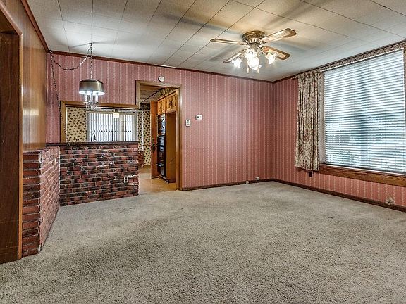 Come see the potential that this home has right in the Heart of El Reno. The home is close to downtown, restaurants, plus walking distance to the library. This 1,453 Sq Ft home offers 3 bedrooms, 1 1/2 baths, large living room with a cozy wood burning fireplace. The kitchen area has lots of counter and cabinet space with a breakfast area and a large dining room for the family meals. The laundry space also has a utility cellar. From there walk outside to a quaint patio with a child's playhouse that matches the home. The air conditioner and roof is approximately 5 years old and the wood floors are original. The home is being sold AS-IS.