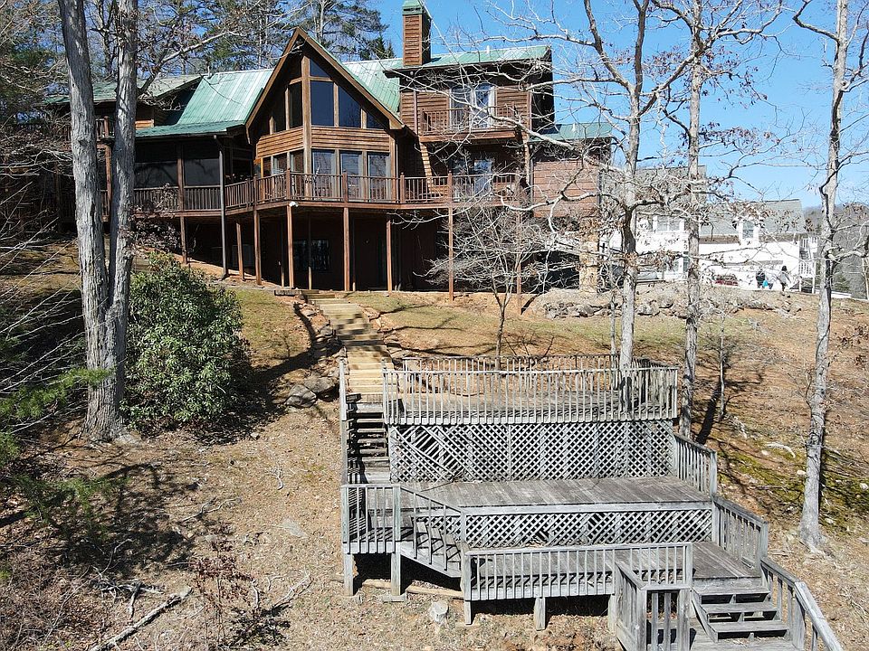 PRICE CORRECTION BELOW $900,000!!! Towering wall of windows enhance the main living space giving unencumbered views of Lake Nottely. This deep water lot situated across from USFS provides unparalleled privacy. Romantic FPLC in BR on main floor, deck + sprawling ensuite BA w/ walk-in closet. 2nd BR suite on the upper floor has its own deck, sitting room/office and ensuite BA. 3rd BR is also on the upper floor w/quaint deck + hall BA. Lower level provides a finished family space including another BA + amazing lake views. Large screened porch off main floor has outdoor grill + plenty of lake view entertainment space. Two garages w/ abundant storage, circular drive and 2 HVAC systems. HOA Fees of $200 covers entrance, road and community boat ramp maint.