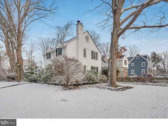 This classic Haddonfield home located two picturesque blocks from the beloved 'Lizzie Haddon' Elementary School is a must see. Set on a corner lot, this brick and frame home has the feel of an older house with modern updates. A flagstone open porch greets visitors who enter to a warm vestibule accented by Tiffany-style light fixture, hardwood floors, bright paneled glass doors and cheerfully painted walls. The large living, room filled with light, is highlighted by a wood-burning fireplace with brick threshold and a large mantle. It is flanked by solid wood built-ins as well. The living room is open to the dining room where a large built-in breakfront serves as a classic storage and display area. The Tiffany-style lighting theme is repeated in the dining room with glass pendant chandelier. The kitchen features stainless steel appliances: refrigerator, built-in microwave, and range. The cabinets are solid wood with glass. A convenient powder room with pedestal sink and exit to backyard bistro seating area are just off the kitchen area. Three bedrooms, a full bath, and a walk-up attic grace the upper levels of the home where original paneled doors and hardwood floors run throughout. The unfinished attic space is perfect for storage or could be finished for the perfect office for the stay at home professional. The full bath features porcelain basket weave tile floors, wall and shower surround ceramic tile with tub and vanity. The finished basement houses the laundry room and also has a great recreation room or teen hang out. The outdoor yard area is amenable to a basketball hoop and sitting areas with trellis accents. The long driveway leads to the attached one car garage. This is the one home you don't want to miss!