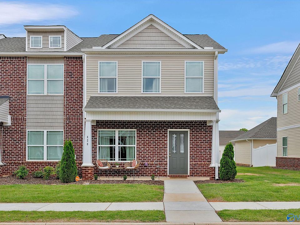 Discover this charming 3-bedroom, 3-bath end-unit townhome in the desirable Promenade at River Landing. Located near Town Madison, Redstone, and a variety of dining and shopping options, this home features LVP flooring, an open kitchen with granite counters, and a convenient downstairs bedroom and full bath. Upstairs, find two additional bedrooms and two full baths. All appliances, including refrigerator, washer, and dryer, stay. Enjoy the private patio and 2-car garage, with a gas grill and electric lawnmower included. HOA amenities include zero entry pool, clubhouse with fitness center, tennis courts, and playground. HOA also takes care of pest control, lawn and exterior maintenance.