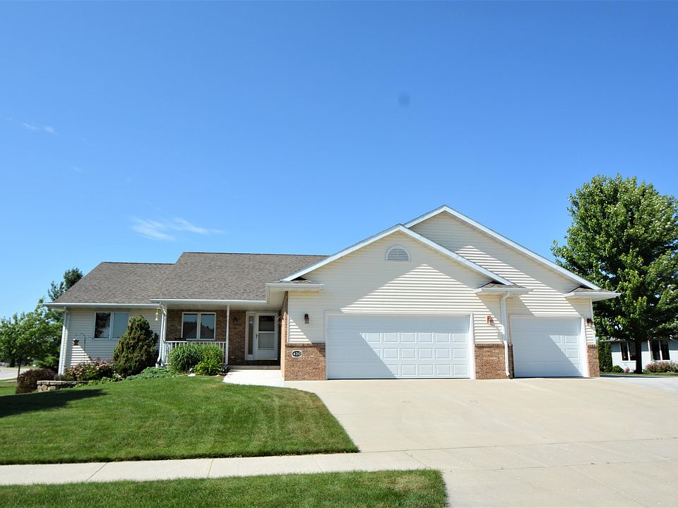 Custom built,exceptional ranch. 2 fireplaces, vaulted ceilings, 3 car garage w add'l parking pad. Maple cabinetry and woodwork throughout, master suite, 1st floor laundry. Beautiful tile work, finished basement w/ huge family room w projector and screen incl. plus office / bdrm and full bath. Fully landscaped yard with deck. New overhead garage doors & openers, new skylights with built-in shades and remote controls. All appliances included!
