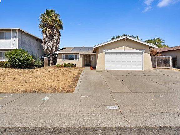 Welcome to 420 Gadwall Drive, a 3-bedroom, 2-bathroom home brimming with potential, located in the heart of Suisun City. This 1,320 square foot property sits on a generous 5,662 square foot lot and is ideally positioned close to local shops and Travis Air Force Base. Perfect for those looking for a fixer-upper with endless possibilities, this home is ready for your personal touch. As you step inside, the layout immediately invites you in, with a living room situated on the left—ideal for creating a cozy, welcoming space for guests or family gatherings. Continue down the hallway, and you’ll find the open-concept heart of the home: the kitchen, dinette, and family room. The kitchen offers plenty of cabinet space and flows effortlessly into the family room, which boasts a charming fireplace, perfect for relaxing evenings. A sliding glass door off the family room leads directly to the spacious backyard, ready for your outdoor entertaining or gardening projects. The backyard also features a large storage unit, providing additional space for tools, equipment, or extra belongings. This home includes three well-sized bedrooms, including a primary suite with its own full bathroom. Both bathrooms offer a blank canvas for updating. The two-car garage is equipped with an indoor laundry.
