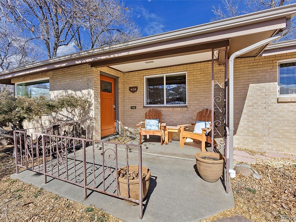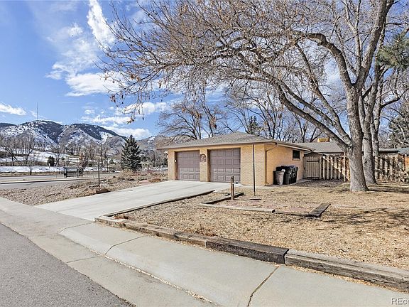 Charming ranch-style home nestled on a cul-de-sac in the heart of Golden! Enjoy unobstructed mountain views from your front porch, steps from South Table Mountain trailheads and an easy stroll to downtown Golden. Rare .26 acre corner lot with extra RV parking, apple and peach trees, Xeriscaping and a separate garden area. This well-laid out 3 bedroom, 2 bathroom home is truly made for both entertaining and everyday living, with an open and sunny floor plan and tons of outdoor living space. The spacious kitchen opens up to the private back patio oasis that includes a hot tub, grill and seating area. Enjoy cozying up to the wood burning fire place with mountain views out of your family room window. Need extra parking and garage space? This home includes an oversized 2 car attached garage and an off street paved RV parking space. The oversized garage includes two utility sinks, a cedar closet and extra storage. This is the Golden home you have been waiting for! Welcome home!