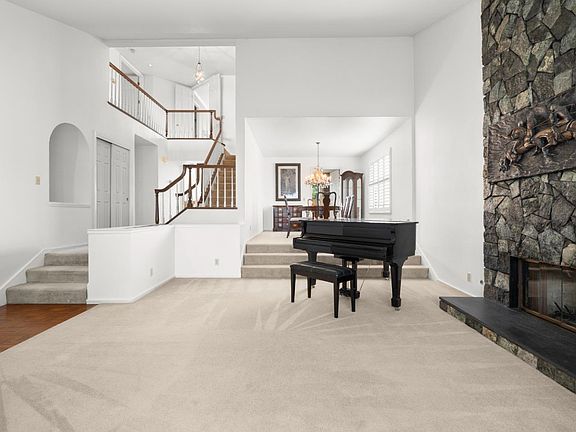 The main level features a dramatic living and dining great room with vaulted ceilings and a fireplace, along with a spacious open-concept kitchen and family room that flows seamlessly to a sun-drenched, south-facing backyard and private deckideal for indoor-outdoor living.