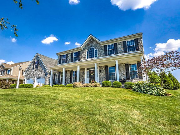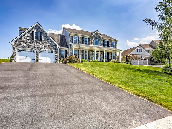 Absolutely one of a kind home nestled on a sprawling extra large lot with gorgeous views over preserved farmland! The welcoming entry of this home features a 2-story foyer with hardwood floors leading into the formal dining room with tray ceiling and 9 ft ceilings on entire first floor. This spacious eat-in kitchen hosts stainless steel appliances, custom tile back splash, a large island, and ample storage including two pantries. An arched entry invites you into the expansive family room that features beautiful views of the backyard and a natural gas fireplace surrounded by an elegantly trimmed mantle. Upstairs boasts 4 comfortable bedrooms and a 408 sq ft bonus room just waiting for your finishing touches.