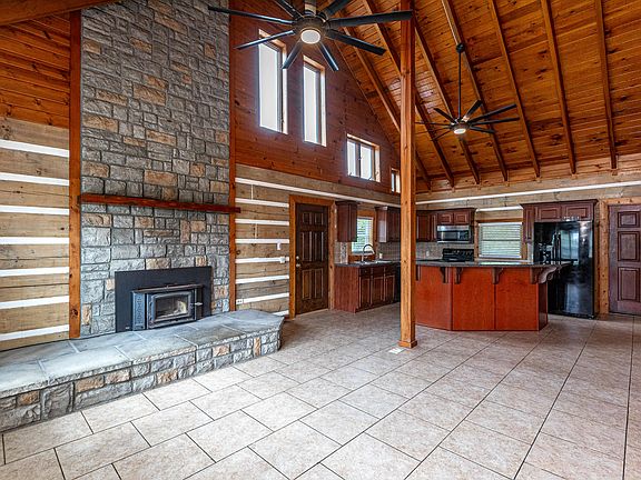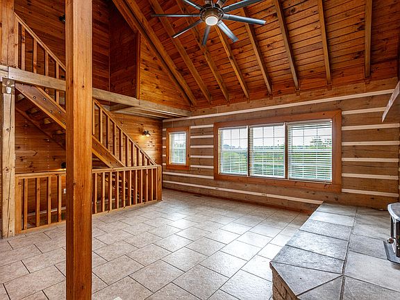 Situated just 15 min from BG Parkway on a quiet dead-end road, don't miss this 4 bedroom, 2 full bath pine log cabin nestled on 17+ secluded/wooded acres in central KY! Offering 2000sf of living space, this stunning property welcomes w/ an impressive, bright open concept living/kitchen/dining area featuring vaulted ceilings and a gorgeous stone fireplace. Ample cabinetry, sleek appliances and additional island seating is offered in the vast kitchen. Two sizable bedrooms and an updated full bath are located on the main floor, and the second level oversized bedroom includes double closets and a flex space - great for an office/bonus room! The climate controlled unfinished walk-out basement is perfect for storage and could easily be finished out for additional living space. Excellent for peaceful outdoor enjoyment is a charming wrap-around front porch and fantastic back patio. This property boasts abundant updates including new HVAC, fresh exterior/interior paint, new fixtures/fans/doors, new landscaping and MUCH more! Sufficient space is available for the addition of a garage/barn for horses/livestock and hiking trails and wildlife are plentiful throughout! A rare find - call today!