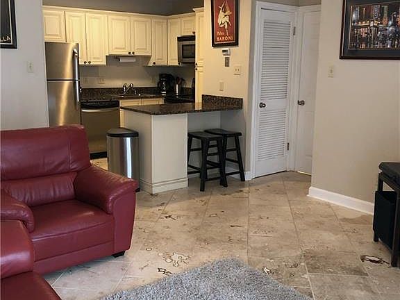 Nicely appointed condo with marble floors, granite countertops, stainless appliances, garden tub and washer/dryer in condo. This condo is fully furnished and includes utilities, cable TV and wireless internet. Assigned, garage parking with gated entry and gated entry to building. The complex is under renovation and the pictures will be updated upon completion. Small pet may be accepted on a case by case basis.