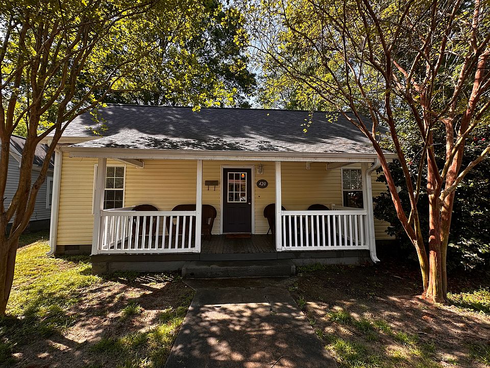 Welcome to the quaint & charming North End of Mooresville Mill Village!! This adorable home is full of southern charm, with a shady back yard and a wonderful downtown neighborhood--the location doesn't get any better than this! The most walkable location in Lake Norman, 5 minute walk to Downtown Mooresville, Alino's/Barcelona, Spinners Field, Liberty Park, and Mooresville PAC. Built in 1917 as housing for workers at the Mooresville Cotton Mills, these humble homes have so much history, character, and quirks. This is a neighborhood of generations and old oaks. Full kitchen and spacious living room in this cozy, happy home. Shady back yard, deck for enjoying the summer, large shed for extra storage! Utilities, as well as yard maintenance, are tenants' responsibility.