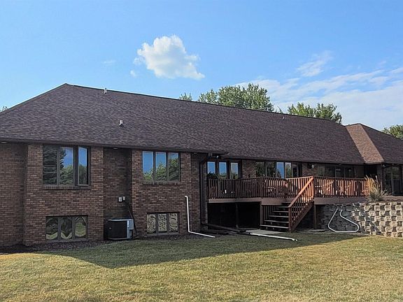 For those of you wanting to find that special acreage that checks all the boxes, this could be it! This property is located on the east edge of Primghar on almost 12 acres. The home is expansive with plenty of room to suit all of your needs. The home has over 3300 square feet alone on the main floor. It has an additional 3193 square feet of finished living space in the basement. This beautiful, all brick exterior home, features five bedrooms and three and one half baths. Three of the bedrooms are on the main floor with a huge master suite with double closets and a separate walk in closet. The master bath has been remodeled in 2019 and features a walk in shower, large soaker tub and a custom vanity with double sinks. The eat in kitchen was updated in 2016 with new cabinets, granite counter tops, an island and new appliances. The shared living space on the main floor includes a family room and dining area with a two sided gas fireplace that can be enjoyed in each room to give it a cozy feel. All of these rooms feature great views of the swimming pool in the backyard and the pasture land. The basement of the home has a beautiful open stairway leading into a large rec room that could be divided into separate areas to suit your personal needs. There is a small custom oak bar on one end. The rec room has an exterior access point to the rear yard and another access point to the garage. Two more bedrooms, a craft room and a large three quarter bathroom round out the basement. The exterior of the home has endless opportunities. In the backyard, there is an awesome swimming pool with a diving board, a large maintenance free deck and a three seasons room with recently updated windows. If you are looking for a place to have horses and be able to ride them without having to always trailer them somewhere to do that, then you will love this property. There is plenty of pasture land for this purpose and two horse buildings with a total of six horse pens and a tack room