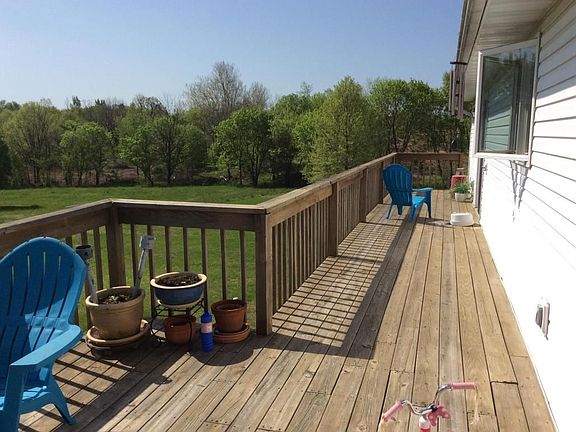 Walk out basement in Ozark schools. Own this property & sit & enjoy this peaceful setting on 4.69 acres. Under the entire length of the fully covered front porch is concreted for storage and/or STORM SHELTER space. The UNEXPECTED OPEN FLOOR PLAN, high ceilings and GAS FIREPLACE WITH BLOWER of this one owner built home with Anderson windows.PULL OUT DRAWERS IN KITCHEN PANTRY. Bar seating provides a great space for entertaining or family time. The formal dining & master bedroom both have ACCESS to the BACK DECK. Don't miss the dressing room in the master. Upstairs, TILE covers the walk ways from front to back. LOTS OF CLOSETS! Beautiful hardwood steps lead down to 2 large bedrooms with a jack/jill bath with separate sinks.
