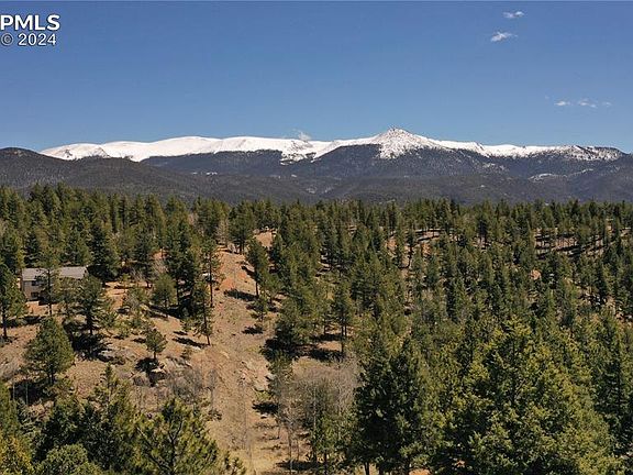 This property offers stunning views of Pikes Peak and Sentinel Point, on a spacious 3-plus-acre lot within the prestigious gated Woodrock community. The home spans 1,910 square feet with 2 living areas, 3 bedrooms, 2 baths, and a 2-car garage. Inside is the spacious living, kitchen, and dining great room featuring vaulted and beamed ceilings and Saltillo terracotta floors. The living area, 16 x24, features a cozy wood-burning fireplace, double patio doors leading out to the wrap-around deck, and a wall of windows offering panoramic views of Pikes Peak and Sentinel Point. Adjacent is the well-appointed 11 x 12 kitchen with granite counters, a 5-burner gas cooktop, wall oven, refrigerator, dishwasher, and microwave. The dining area, also 11 x 12, provides ample space for entertaining. Also on this level you'll find the 12 x 15 Bedroom #1 with carpeted floors, vaulted wood ceilings, and double closets. Adjacent is the 5 x 10 main bathroom featuring a ceramic tub and shower. Also adjacent is the 10 x 12 Bedroom #2, which could serve as an office space. On the lower level, you'll discover a spacious 15 by 18 family room with Saltillo floors and access to the lower-level pet enclosure, The adjacent 12 x 15 Bedroom #3 plus a second 5x7 full bathroom, the laundry area and 2-car oversized garage Upgrades: 2024: Septic pump & inspection, garage door tune-up, stucco clean and repair 2023: Interior paint, granite counters 2022: Remote control living room shades 2021: Wrap around composite deck addition, new landscaping 2020: Carrier high efficiency furnace, new Frigidaire oven 2018: New impact resistant roof, new dryer 2017: New dishwasher 2014: Original deck and railing replacement Outside, the property offers breathtaking mountain views, fabulous sunrises and the opportunity to observe abundant wildlife. With 600 adjacent acres for hiking and exploration, as well as the option to join a fishing club, this home epitomizes the quintessential Colorado lifestyle.