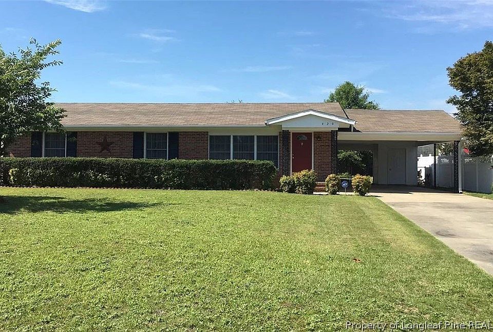 Great brick ranch home located in the Cottonade subdivision. Home has 3 bedrooms/1.5 bath, hardwood floors throughout living room, kitchen with granite counters, stainless steel appliances, and eat in kitchen. Spacious bonus room added onto the back of the house complete with a gas fireplace. Two driveways-one into carport and one on the concrete slab in back. Fenced backyard. Close to Fort Liberty.