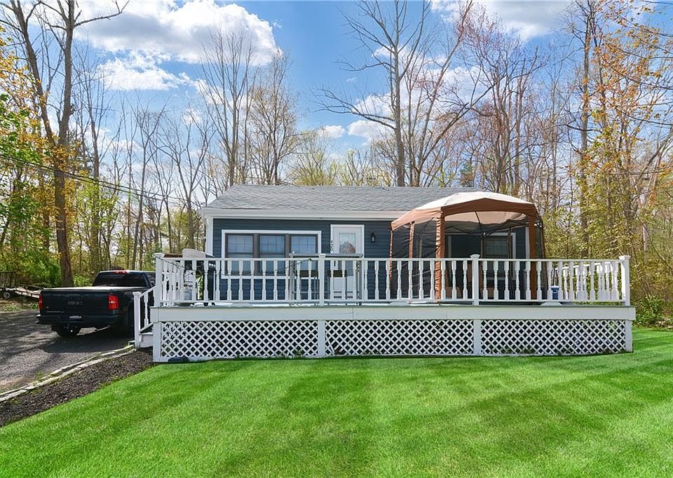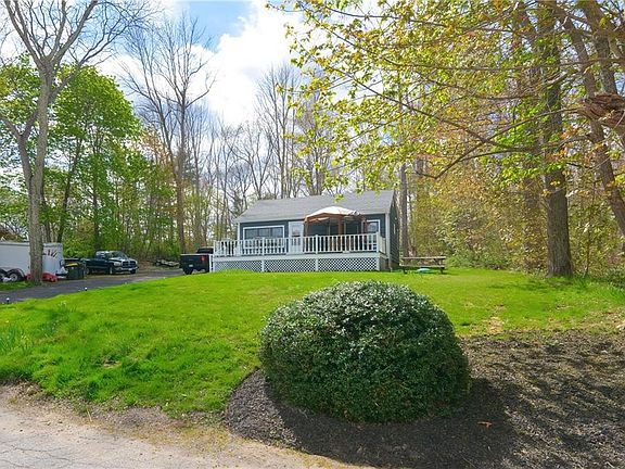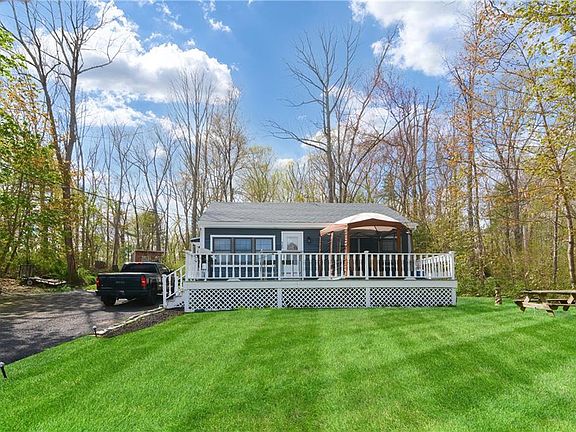Welcome to your tranquil retreat nestled amidst serene woods! This charming single-level home boasts 2 bedrooms, 1 full updated bathroom, an updated kitchen, as well as gleaming hardwood flooring throughout the living space, ensuring modern comfort meets classic charm. The additional living space in the partially finished basement is a great spot for a family/media room, office, playroom, or additional space to host guests. Enjoy seamless indoor-outdoor living with a spacious front deck and newer back patio, perfect for entertaining or simply soaking in nature's beauty. Set back from the road for added privacy, this peaceful abode offers the ideal blend of tranquility and convenience. Additional features include newer septic, well (2021) and roof (2021). Don't miss out on the opportunity to make this your haven away from the hustle and bustle of everyday life!