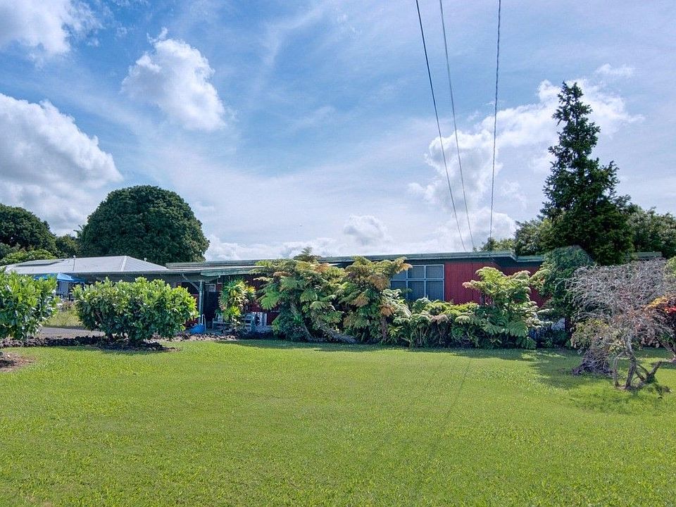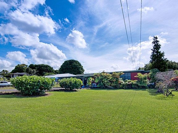 Spacious 3 bedroom/2 bath home, over 2,000 sf on a 18,180 sf lot near municipal golf course and University of Hawaii, Hilo. Handicap access and handicap double shower.Attached studio unit has a bathroom, kitchen area, and air conditioning unit.2 car attached carport with laundry area. Covered lanai backs to a spacious back yard with fruit trees.