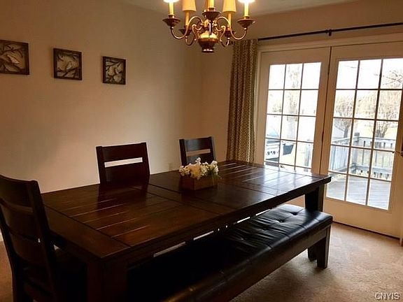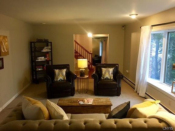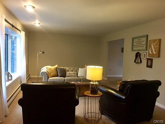Beautifully maintained home in highly desirable neighborhood! Modern eat-in kitchen features large window with bench seating & built-in desk. Large, bright & airy living room. Dining room with access to the back deck. Cozy family room has wood fireplace, built-ins, & door leading to an enclosed sun porch. Half bath also serves as the laundry room. Spacious master suite upstairs features a walk-in closet & remodeled bathroom with double vanity. 3 additional bedrooms have plenty of space and double closets. Full basement is heated, has a separate storage area with shelves, and would make a great home gym, workshop, "man cave", etc. Sizeable deck and lovely backyard to enjoy during the upcoming warm months. Wired for generator & security system. 10 miles to Fort Drum, 1/2 mile from hospital.