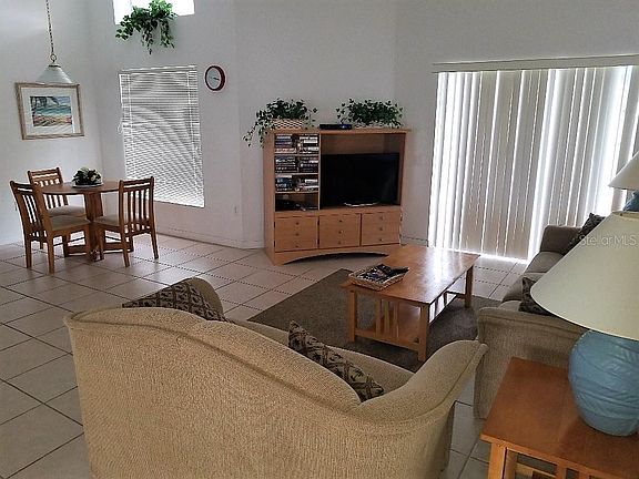 Fully furnished 4 bed/3bath single family home located in the popular Westridge subdivision in Davenport near Disney. This home features a South Facing pool that is completely screened in and pool service is included. This split bedroom home offers an open floor plan with great room area, dining area, and kitchen with breakfast nook and breakfast bar. The master suite en-suite features a large walk-in closet and sliding doors leading out the pool. the second bedroom is also an en-suite. Bedroom three and four share a full bath. The home also includes a washer and dryer and two car attached garage. Westridge has a clubhouse, exercise room, community pool, tennis courts and playground. Located off Highway 27 minutes from I/4. Route 192, and a variety of shopping centers and restaurants. This home is a real find.