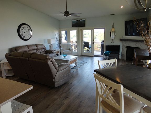 A condo is a great way to enjoy the entire Lake James Chain of Lakes, without all the work! This upscale condo on Jimmerson lake is only 5 years old. It comes with an attached garage and an additional garage across the street for the 2nd car, lake toys, golf cart or whatever your needs. They also have a neighborhood swimming pool, and a boat slip. The view from the deck is outstanding!