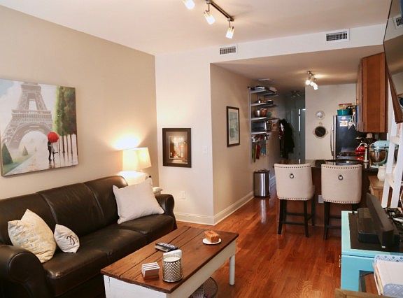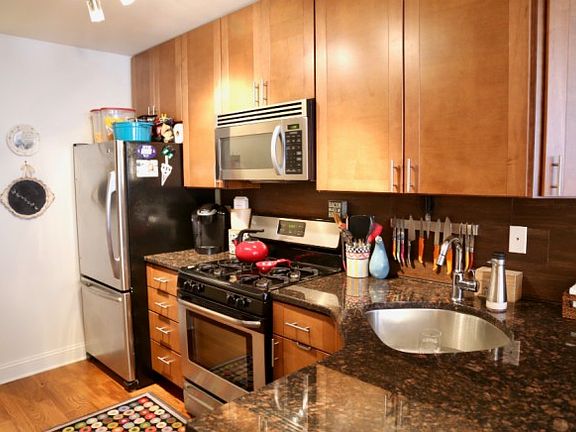 This super cute, recently renovated 1 bed/1 bath is move-in ready & perfect for first time buyers or investors. Lots of luxury touches including granite countertops, breakfast bar & stainless steel appliances as well as a beautifully tiled bathroom and front-loading washer/dryer. The bedroom is large enough for a king-sized bed and features California storage systems in both closets. Throughout the home you'll find custom window blinds, central AC, hardwood floors, LED track lighting & exposed brick. The basement offers a huge private & secure storage space. All this...plus a NYC view from the living room! Close to transportation, stores, restaurants and parks too.