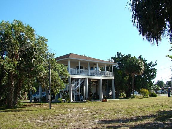 This highly desirable unique one of a kind GULF VIEW property with permissible RV usage; offers a oversized parcel of land with a building and dock on the MAIN CANAL of HORSESHOE. Come and enjoy the gulf views from the front porch of this 2bedroom/2bath home. This home features an open floor plan providing gulf views from several areas of the home, vaulted ceilings, wood floors and a freight elevator. There is also a utility building on the property with finished walls. Lastly, and most important.... Boat dock and building located on the Main Canal of Horseshoe Beach..... This waterfront building is perfect for entertaining and/storage... with a few final touches; Your Tiki Hut awaits! What are you waiting for