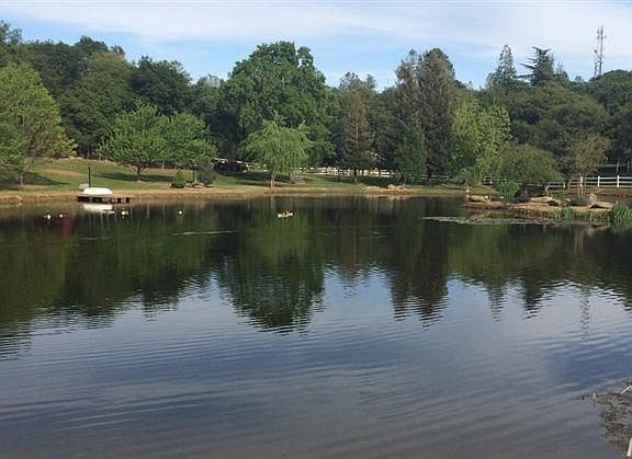 Waterfront Country Estate! Almost 11 park like acres on beautiful Mill Pond + 2nd private pond w/ island! 4400sf custom home is virtually single story. Home is full of upgrades: vaulted ceilings, crown molding, used brick, 2 fireplaces, large deck, 4 car garage, 2 wet bars, & large kitchen overlook incredible land. Gated entry. Vineyard. Garden. Fenced & cross fenced. Great horse property. Possible land split/2.3 acre zoned. Fully owned Solar means little/no PG&E bill!