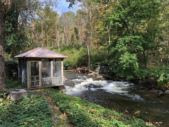 If the walls of this 1795 home could tell a story, it would share volumes of life's history of the Village of Millerton, New York. This property was once the home site of a well-known flour and feed mill in 1870. Remarkable classic Federal Style home, distinguished with early American architecture, quality workmanship and materials including a facade of Vermont marble, original hardware, indented interior window sills and hand-painted interiors. There are many original details still intact on this extraordinary 3 bedrooms, 3 bathroom and 6 fireplaces home. The Webutuck Creek borders this 39-acre property with over 4,000 feet of water frontage wondering thru the property of woods and fields. Handsome timber framed guest cottage with a large hearth, cathedral ceiling, bath, kitchen and sleeping loft. Close to the Harlem Valley Rail Trail, The Movie House, Catamount Ski Area, Butternut Ski Area, and Hotchkiss Private School.