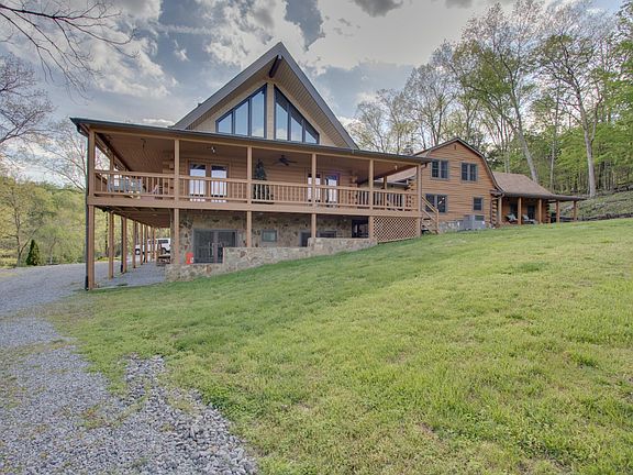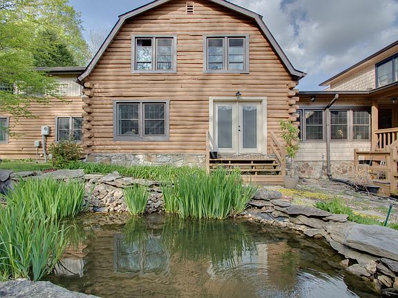 Endless possibilities for two stunning, custom log homes joined by foyer on 22+ ac. 5 bedrooms, 3 1/2 baths with gourmet kitchen, gas fireplace in modern cabin and 2 bedrooms, 2 bathrooms, large, wood burning fireplace plus 2 bonus rooms in cozy cabin. Wrap-around porches overlook a dreamy, pastoral view. Fantastic special event venue or bed-and-breakfast. An entertainers dream. 2 car det. garage, barn/stables, and a koi pond. Must see, too much to list.