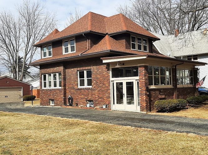 So much character in this all brick 3 bedroom, 2 full bath home. Beautiful built-ins, leaded glass, coffered ceilings, and some pocket doors. Beautiful enclosed front porch for relaxing or entertaining. Brand new windows in the last 6 months. Roof is approximately 7 years old. Furnace, central air, water heater, and all appliances new within the last 4 years. All appliances can stay. Home boasts a 2.5 car detached heated garage, plus a carriage garage attached to the home. Basement could easily be finished if extra space is needed. Schedule your showing today!