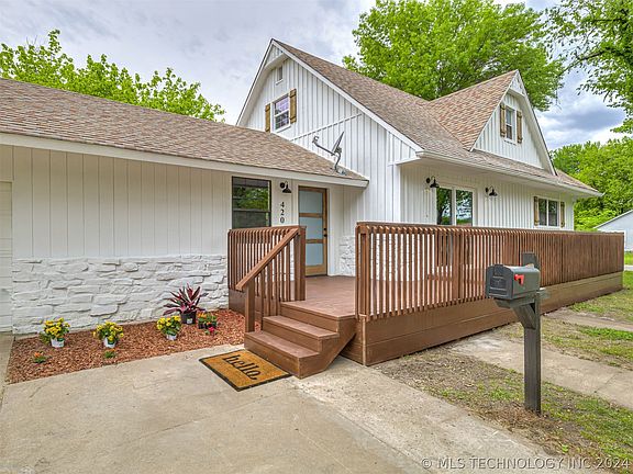Running out of room and wanting character, quality and charm? Welcome to 420 N. 13th Street! This turn of the century farmhouse has been meticulously renovated with no expense spared. Updates include plumbing and electric, exterior and interior paint, lighting, cabinets, fixtures, flooring... the list goes on! The new open concept living space boasts water resistant vinyl plank flooring. A completely redesigned kitchen offers a top of the line gas range, farmhouse sink, quartz countertops and even a pot filler! Three bedrooms are located downstairs, including the master suite and an exquisite bathroom complete with clawfoot tub. Upstairs, you'll find the perfect location for that teen or family member wanting privacy - a generously sized bedroom with half bath, sitting area and a little cozy nook. A first floor laundry room with tankless water heater round out this turn-key gem. There's plenty of room for kids and pets to play on the fully fenced, oversized lot. To top it off, there's a she shed AND a he shed - both with electric! Located just a few blocks from quaint downtown Collinsville, this property offers the best of both worlds - a small town community feel with an easy commute to neighboring Owasso, Claremore and Tulsa. Call to schedule a showing today!