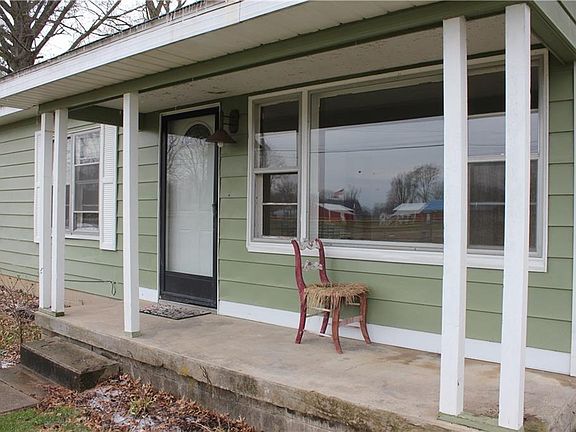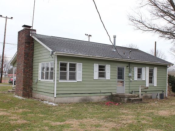 This ranch-style home has an inviting front porch to welcome guests into a large living room with wood-burning fireplace and is open to an updated kitchen/dining area with access to a laundry space and rear door to spacious .47 acre lot. 3 bedrooms share a full updated hall bath. With almost 1,000 SF, some of the recent updates include new paint, carpet and ceramic tile flooring, new kitchen countertops, light fixtures and much more. Newer roof and mechanicals gives peace of mind for long term livability. This property contains 2 lots with a 1-car detached garage. Quiet, dead end street has access to town park and baseball diamond. Home is connected to city water and sewer with lots of potential and space to grow.