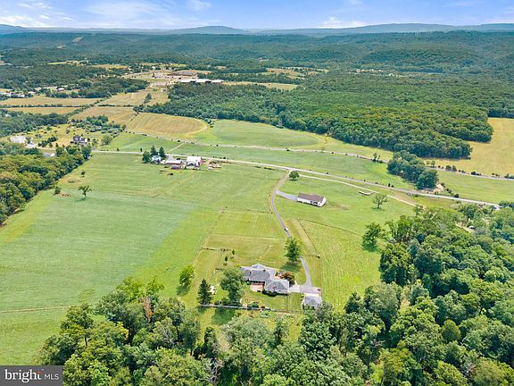 Spectacular mountain views from nearly every vantage point are just one of the highlights of this sprawling ranch just minutes from the amenities of downtown Winchester. Perched on a hilltop, this spacious brick home includes 3.5 acres of estate-like grounds. It’s everything you have been looking for and more. Plenty of windows and glass doors capture the light and frame the stunning vistas. A bright and welcoming foyer, four large bedrooms, three full and two half-baths and multiple gathering spaces make this the perfect home for family or entertaining guests. Two wood-burning fireplaces warm the living and dining areas (easily interchangeable). An additional lounge or reading nook with built-in seating and a dry bar connect the open concept kitchen with the dining room. The kitchen, which also opens to the living area, features chic gray and black cabinetry, a coffee/wine bar with cooler and a seven-foot island with leather-finish granite counters. Contemporary paint colors, LVF flooring in the main floor living areas, two updated wood-burning fireplace surrounds and stylish lighting give the interior a modern look. A laundry room with extra storage and an oversized deep sink is conveniently located off the kitchen. Downstairs, a basement almost as sprawling as the main house is mostly finished and partially carpeted with more built-in cabinets, a third wood burning fireplace, exercise and/or media room and the second half bath. This space is a blank canvas just waiting to be developed into your own recreation or hobby space. The property features multiple low-maintenance garden areas for puttering, relaxing, entertaining or simply enjoying the natural habitat that has been created to attract pollinators -- especially butterflies, hummingbirds and bluebirds. A walled courtyard, accessed from the kitchen/living area, extends the home’s interior into a private outdoor oasis. The newly screened porch, accessible from both the kitchen and dining room, provides a more casual hangout. A salt-water hot tub with views of the extensive perennial gardens is located at the rear patio. A good portion of the backyard is fenced for dogs, but don’t miss the meditation garden, hidden behind the free-standing garage, or the fire pit, located in the lower pasture, now being reclaimed with native flowering and fruit trees. An oversized, two-car garage with storage and workshop is attached to the house. A second, detached two-car garage can accommodate additional vehicles, recreational toys, lawn equipment and tools. Of special note: many renovations or upgrades were completed between 2018 and 2022, including the kitchen, baths, windows (with lifetime guarantee), appliances, carpet, Leaf Filter gutter system, water pressure tank and water softener. The well and septic were serviced in 2022 with a new well pump installed and another yard hydrant (there are four total). The Blue Oasis hot tub was installed in 2019, the fire pit in 2021.