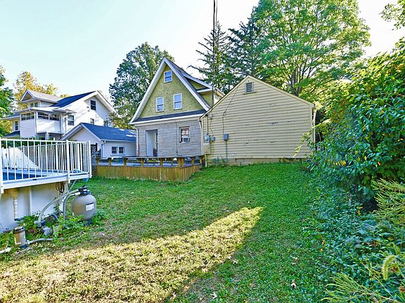 This historic home sits with Ellenberger park directly across the street. With a little hard work and lot of love this home could be restored to its Grandeur . Complete with 5 bedrooms and a possibility of the 6th. There is a bonus room of a finished attic equipped with pull down stairs. The front sun porch is a 4 season room for yearly comfort. Wood burning fireplace and built in book cases in living room. Hardwood Floors most of the main floor and several of the bedrooms. The above ground pool worked when closed the season of 2023, it is in need of a new liner. Large garage with plenty of storage, and did we mention there is a basement unfinished for storage as well. Lots of space for the whole family. Family room area could serve as in-law quarters with full bath. (3) Full baths.