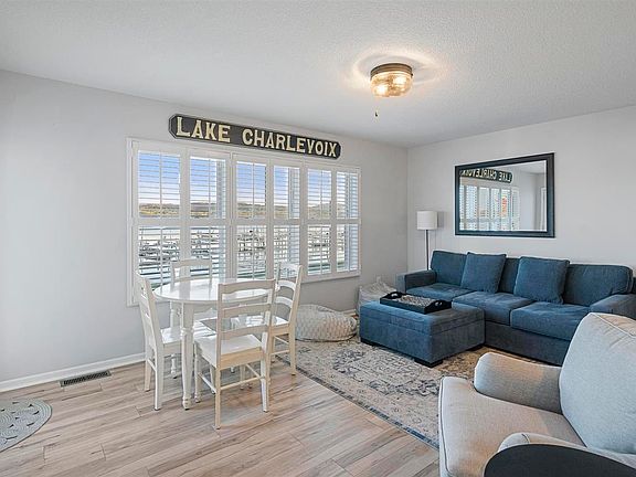 The calm waters of the South Arm, Lake Charlevoix, welcome you to this first floor lakeside condominium. Unit 1 at Harborage Pointe provides walkout access to 630' of shared sandy beach, an association shared dock with a private slip and boat lift. This year-round two bedroom, two bath condominium is in excellent condition, has been fully aesthetically updated and is being offered furnished and decorated with cottage accents fit for your northern retreat. Plantation shutters create a tasteful privacy when closed but open to the pristine northern view of beautiful Lake Charlevoix. The quaint town of East Jordan is just minutes down the shore, offering dining and entertainment, complete with new boardwalks, restaurants and exciting new shops. Cast your line into the mouth of the Jordan River, and take in the views of the Jordan Valley. No thinking needed here, just bring your toothbrush, skis in the winter and swimsuit in the summer. Have it all here on Lake Charlevoix!