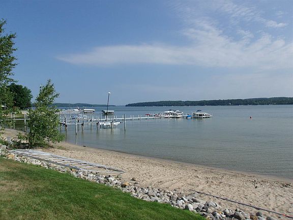 Sandy swimming beach with convenient dockage for boat & lake toys. Hard to find 3 bedroom lower unit. Walk out to patio and right to the beach. No stairs!