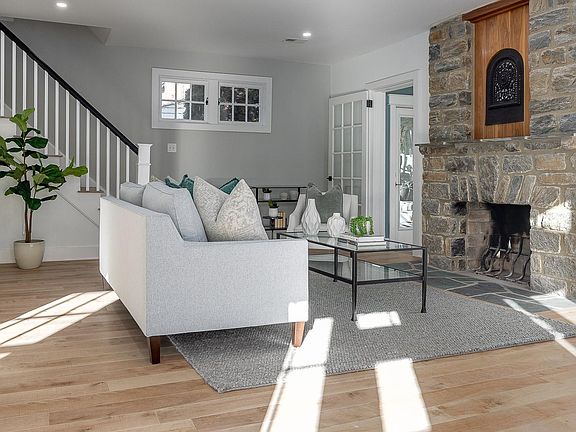 This classic Swarthmore colonial offers all the charm of an English cottage, with the unique contemporary design and special focus on comfortable modern living bestowed on each coveted restoration by noted local builder RS Lee Construction. Curving stone walls lead to the house, which is tucked away from the street and set sideways on its lot to allow lush green views from every room. From the copper skirt roofing and custom copper shutters, to the glass vestibule, and charming two-car garage with loft, you’ll feel you are entering a fairytale the moment you arrive. Enter the vestibule and step into the living room for a taste of the brand-new hardwood floors and soft neutral colors found throughout most of the house. The stone wood-burning fireplace is flanked by glass doors leading out to the spacious family room, which offers bright views through nine windows and a glass door to the elegant rear patio. A sunny space for reading, working, or relaxing and watching the changing seasons, the family room is sure to be everyone’s favorite spot. On the other side of the living room, the dining room and kitchen have been opened completely to create a luxurious space for cooking and entertaining. The dining area boasts a full wall of granite-topped wood buffet cabinets, perfect for serving as well as ample storage for china, flatware and more. The kitchen area offers snowy white cabinets, topped in granite, with a striking herringbone marble tile backsplash. Stainless steel appliances, including an induction cooktop with hood and wall oven and microwave, add function to form. A classic double window view may be found over the undermounted oversized stainless-steel sink. One doorway from the kitchen leads to the basement and a second glass vestibule that spills out onto the patio. Another leads to a laundry room with utility sink and ample storage cabinets, as well as a mudroom nook with a door to the yard, and a charming powder room with a vessel sink, all accessed via pocket doors. Upstairs, the primary bedroom boasts peaceful views and a large custom designed closet, as well as a beautifully appointed primary en suite bath with a slate tile floor, huge glass door stall shower with nature-inspired tile surround, and a furniture-style, marble-topped vanity with double sinks. The full hall bath was also fully renovated, and features a tub/shower combination with subway tile surround. Two additional bedrooms, each with pretty views from three windows, and a large closet with organizer, complete the second floor. The finished basement includes the fourth bedroom, a full bath with stall shower and pedestal sink, and a flexible space that could be used as a home office, rec room or den. Outside, a gorgeous slate patio stretches the full length of the house. One side is sheltered by mature evergreens, the other by a picturesque brick and stone wall. A hard-plumbed gas grill allows this sumptuous space to be a second kitchen and dining room during the warmer months. Let the parties spill out from the family room across the patio and back into the kitchen again. Or keep this magical space all to yourself as you curl up with a cup of tea to watch the fireflies at night. A brand-new HVAC system throughout the main house, and a mini-split system for the lower level, will keep the house comfortable no matter the time of year. Double insulated replacement windows allow efficiency and ease of use for days when nothing but fresh breezes will do. Follow the sidewalk just a few blocks to get to Swarthmore-Rutledge Elementary School and the Swarthmore Swim Club. Or explore Swarthmore College campus on the way down to the village downtown shopping and train station. Just half an hour from downtown Philadelphia by train or car, and twenty minutes from the Philadelphia International Airport by car, this beautifully restored home offers a peaceful escape that is perfectly convenient to everything the area has to offer.