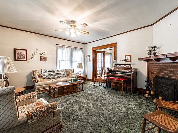 JUST LISTED-- 420 N. Vine Street, Mt. Pulaski, IL is a white Craftsman on the corner of Jasper Street and Vine Street, listed for sale at $149,900. This home features a large front porch, 4 bedrooms, 1 full bathroom, a detached 2 car garage, a full unfinished basement, and MORE! This home has been wonderfully taken care of for YEARS! This home also has beautiful original stained woodwork and doors, a large front living room with a corner fireplace, French doors that open into a formal dining room, 2 nice sized bedrooms on the main floor, a full bathroom with tub/shower combo, fantastic stained cabinetry in the kitchen! Upstairs you'll find two large bedrooms, with the potential for additional storage areas, plus a future bedroom! In the rear of the home, you'll find a newer detached 2 car garage, and off-street parking! Be sure you call your Agent of choice to see 420 N. Vine Street, Mt. Pulaski! --Listed by Andy Meister/ME Realty