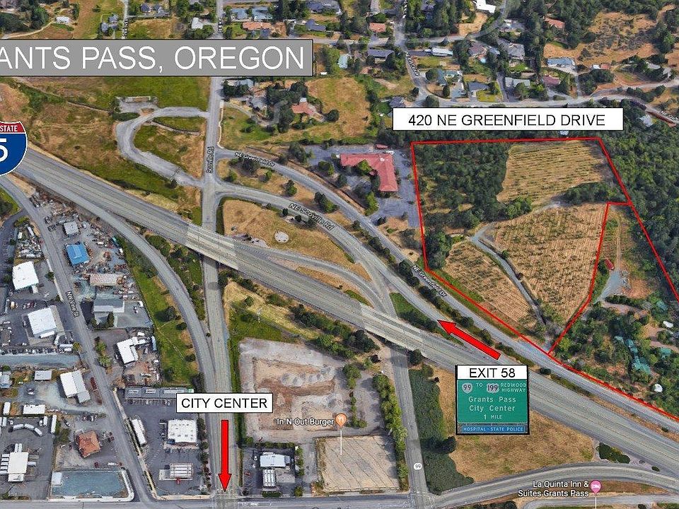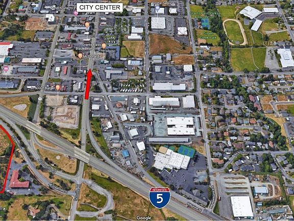 Prime Interstate-5 Interchange Location -13.03 acres zoned general commercial. High visibility from Interstate-5, easy access to Exit 58 & NE Grants Pass. The General Commercial Zone provides for all commercial & professional uses, except those uses requiring on-site manufacture or assembly. Purchase includes 2 tax lots, 9.76 & 3.27 acres - both zoned General Commercial and over 3,500' sq. ft. of as-is historical improvements that offer a wide range of potential uses. Public sewer main crosses the property and a city water main is located at adjacent property. Hotel, restaurant, office, retail, strip mall, sales lot, & big box store are just a few of the many uses for this exceptional development site. Owner financing available to qualified buyers which will allow new owner to secure a prime commercial location for future use, use capitol to develop the site, & establish revenue.