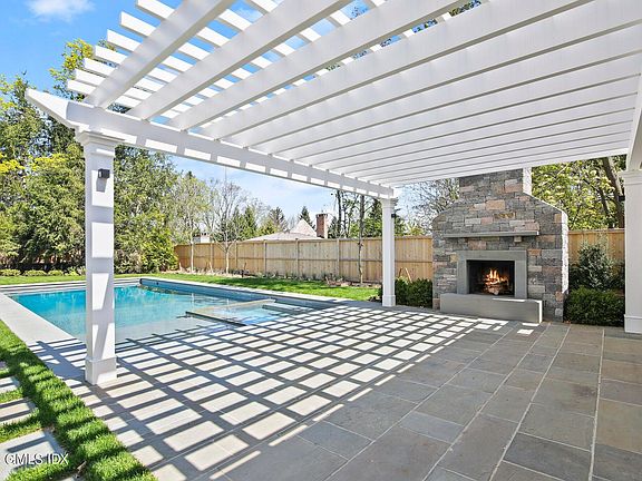 Ultra-stylish, totally renovated home boasts a fabulous pool house, pergola-topped terrace with stone fireplace, pool, spa and outdoor kitchen set back on one landscaped acre with beautiful stone walls. This incredible transformation has resulted in a dynamic design showcasing an open floor plan, luxurious finishes and 8'' white oak floors. Highlights include striking chef's kitchen and large dining area with walls of windows/doors overlooking pool, family room; living room with fireplace, bar; second floor primary suite with sitting room/office, walk-in closet, three en-suite bedrooms and radiant heated bathroom floors. Guest/Pool house (approx 800 additional square feet) offers kitchen, lounge with vaulted ceilings, retractable doors to terrace/pool and en-suite bedroom.