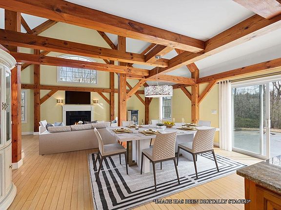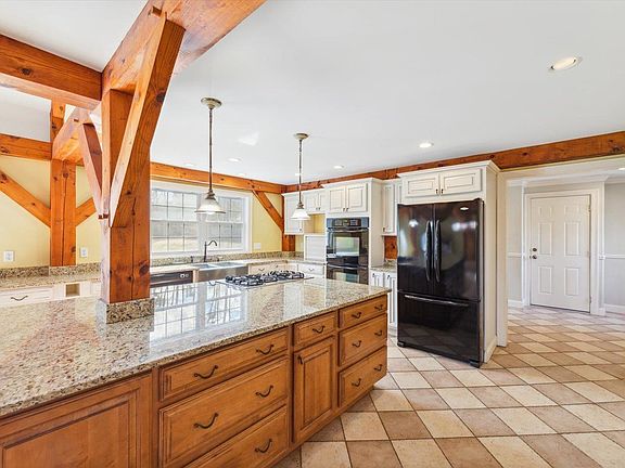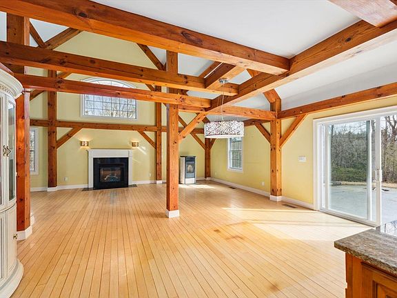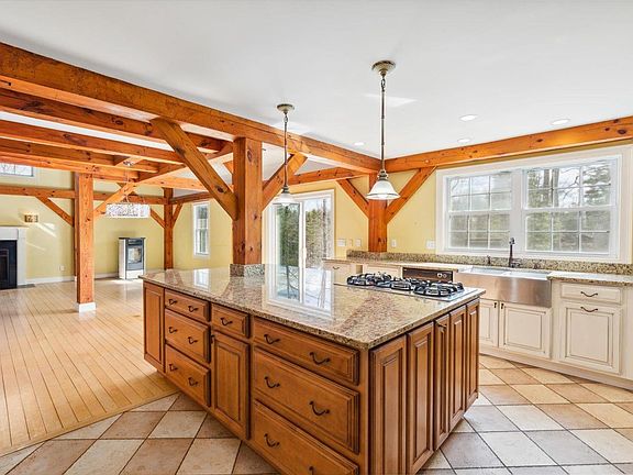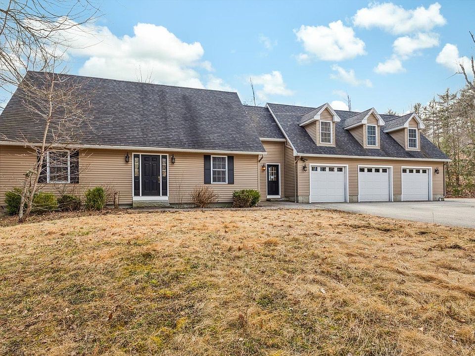 Welcome home! This charming 3BR, 2.5 bath Post and Beam Cape sits on 5.2 private acres. Step inside to discover an inviting open-concept layout, highlighted by a soaring cathedral ceiling living room adorned with exposed beams and anchored by a gas fireplace and pellet stove. Natural light pours in, creating an airy and inviting atmosphere. The heart of the home is the spacious kitchen, with granite countertops, complemented by a generous kitchen island, ample cabinet space, and a convenient pantry for all your storage needs. This kitchen is sure to inspire your inner chef. For those who require a dedicated workspace, a home office on the first floor provides the ideal environment for productivity and focus. A front foyer, mudroom and half bath as well. Venture upstairs and find two large bedrooms, each offering ample closet space and natural light. A full bathroom serves these bedrooms. The expansive primary bedroom suite has 3 closets, for all your storage needs. A full bath with double granite vanity, walk-in shower and deep soaking tub. Features include central AC, 3 car attached heated/AC garage, central vacuum. Outside you'll find a large patio with built-in firepit, and outdoor kitchen for entertaining. A 20x30 barn with loft, poultry coop, garden beds and yard space. This one has it all! Conveniently located to walking trails, 2 grocery stores and shopping. Offer deadline is Tuesday 3/26/24 at 5pm.