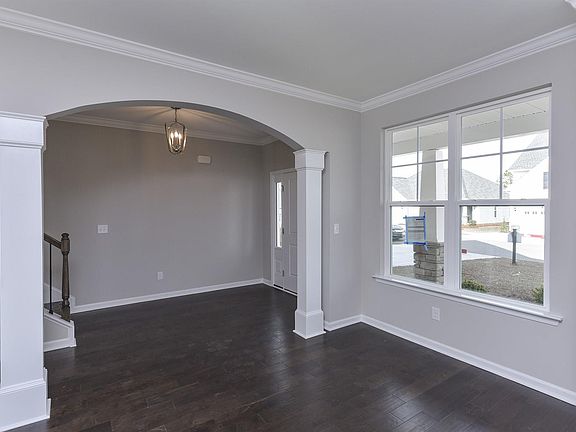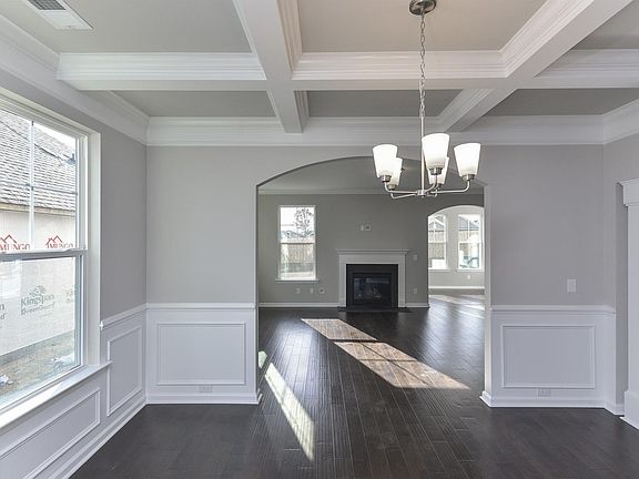 The Roland is a four bedroom, three and a half bath home with a formal living room, formal dining room, a bright sunroom and a separate sitting room attached to the master bedroom! This combination brick and stone front home has tons of curb appeal. From the front porch, enter the front door and be amazed at the details visible from the foyer including hardwood flooring and crown molding throughout the main floor. A formal living room with arches is open to the formal dining room featuring an elegant coffered ceiling. The kitchen offers many upgrades including a gourmet gas cooktop, a built-in oven/microwave wall unit and a large island. The counter tops have been upgraded to stylish quartz. Like to entertain? The kitchen is open to the spacious family room with a gas log fireplace and a sunroom. Walk up the oak staircase with twisted metal balusters and you will find your beautiful master suite with a boxed ceiling and separate sitting room! The large master bath is decked out with separate vanities, a tiled shower, tiled soaking tub and his and hers closets. The bonus room if perfect for a home theater, play room or mancave. Three additional bedrooms, 2 full baths and laundry room are also located upstairs. Let your children or pets play in the fenced back yard while you relax on the patio.